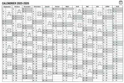 Calendrier des semaines 2025-2026
